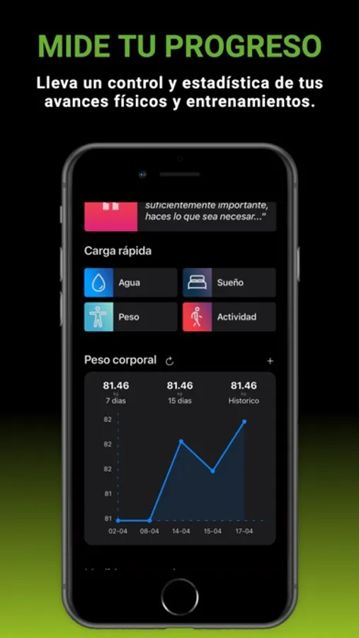 - Registro y estadísticas de: peso y medidas corporales, pasos, etc.
