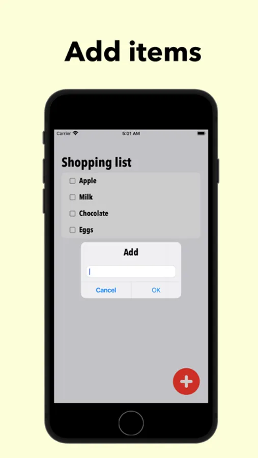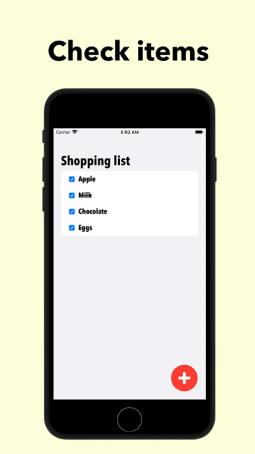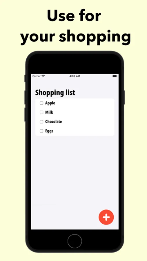 This application lets you create a shopping list. You can write down what you need. When you find what you need while shopping, you can check it off and delete it when you are finished.