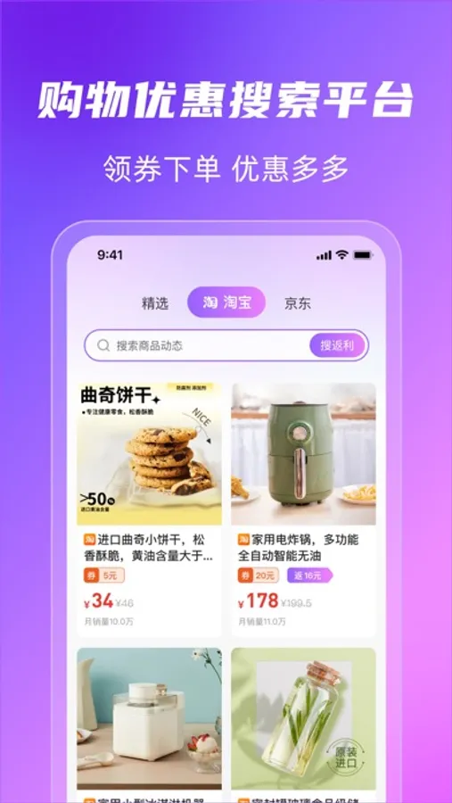 1.大额优惠券:购物都有大额优惠券,叠加优惠再返利,随时随地优惠购物;