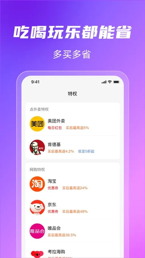 3.自买省钱,轻松购物:轻松购物领取优惠券,购物优惠返利佣金多多享。