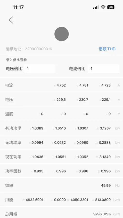 测控终端的实时数据、历史用能、电压电流谐波畸变、报警事件等参变量;
