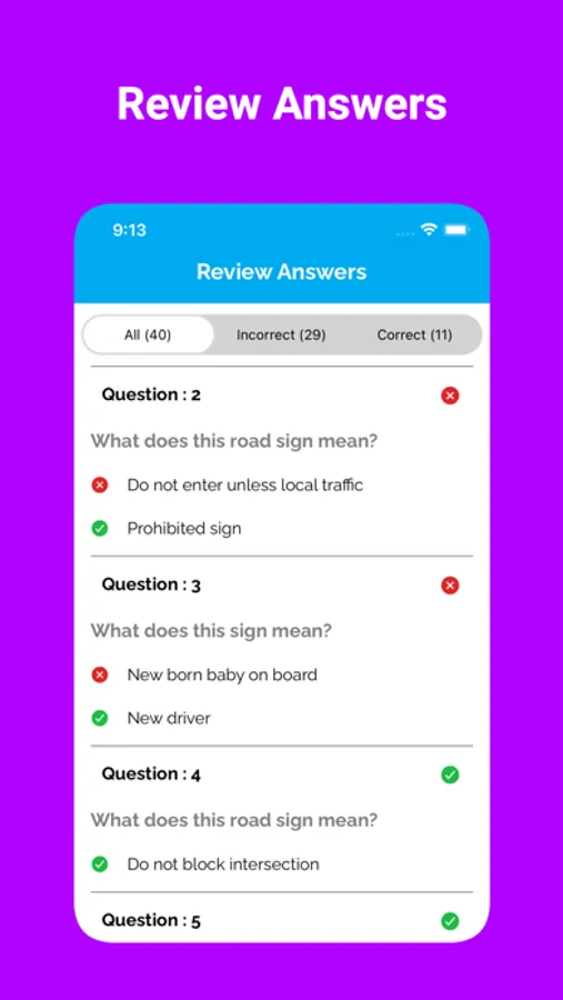 The app contains multiple choice mock test and practice exams that are designed to prepare G1 test. This gives users the opportunity to acquire a sense for the kinds of questions they'll be asked on the exam as well as practice their ability to take tests.