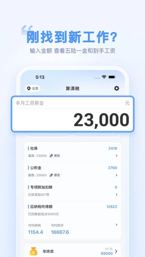 输入工资,即可实时计算纳税详情,让你了解社保、公积金、个税和税后收入