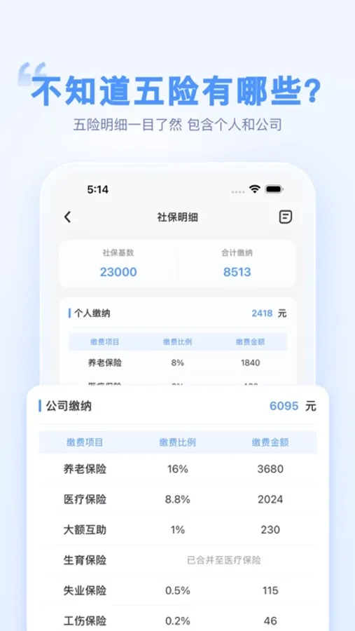* 计算五险中各个险种的比例和金额(包含大额互助等)