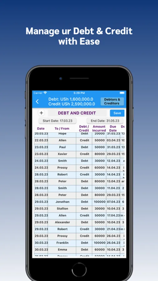 Record your debts & credit data here. If you have routine debtors or creditors, you can add them in Routine Debtors & Creditors to use as auto suggestions.