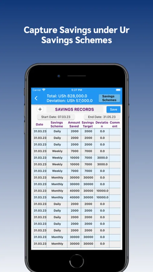 Record your savings here. For best experience, add your savings schemes first to use as auto suggestions. Enter your daily savings into the Daily Savings section.