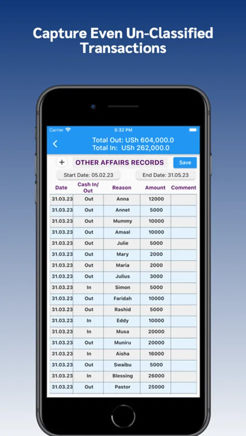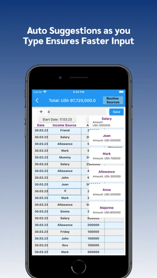 Record your Incoming cash here e.g from wages, salary etc. If you have routine income sources, you can add them in Routine Incomes Section to use as auto suggestions. Enter your daily incomes into the daily Incoming Cash Section.