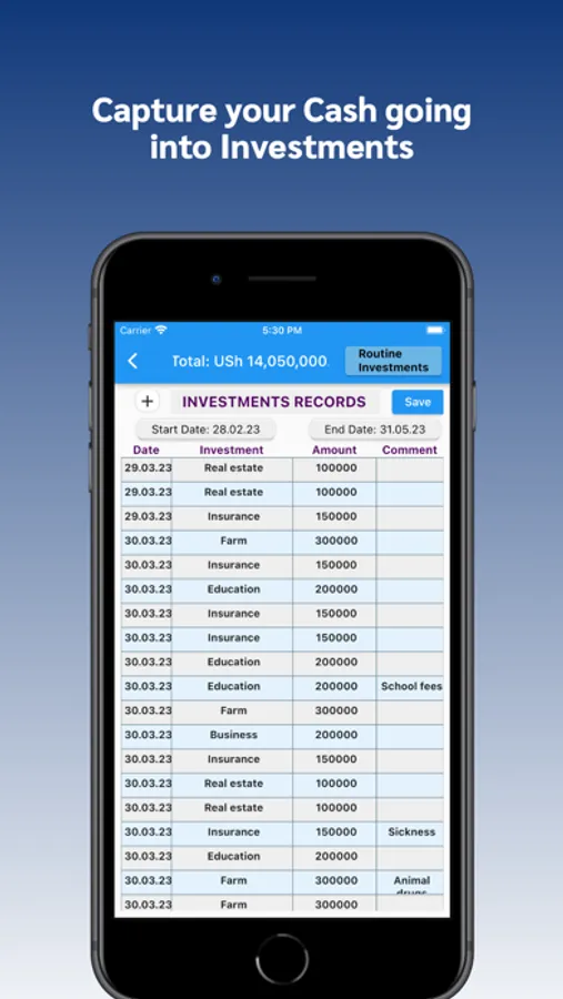 Record your Cash Invested here. If you have Routine Investments you can add them in Routine Investments Section to use as auto suggestions.