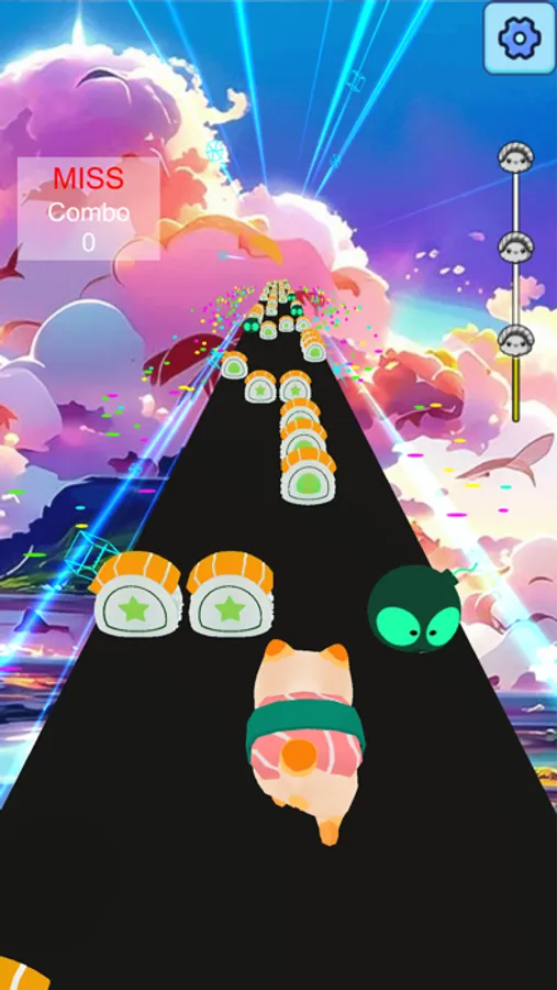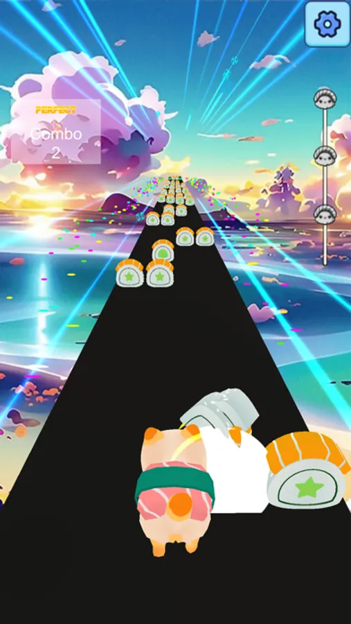 寿司猫を片手で操作して寿司を叩くだけで、音楽のリズムと完璧に調和します