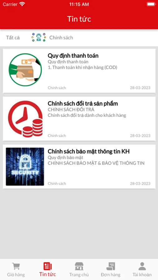- Mua sắm trực tuyến tích hợp giỏ hàng