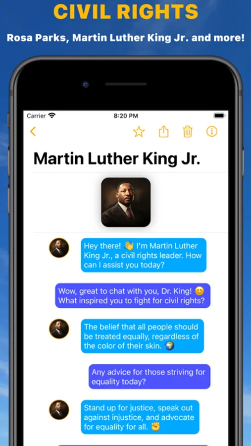- And More: Stay tuned for future app updates, as we continue to add new historical figures to expand your conversational horizons!