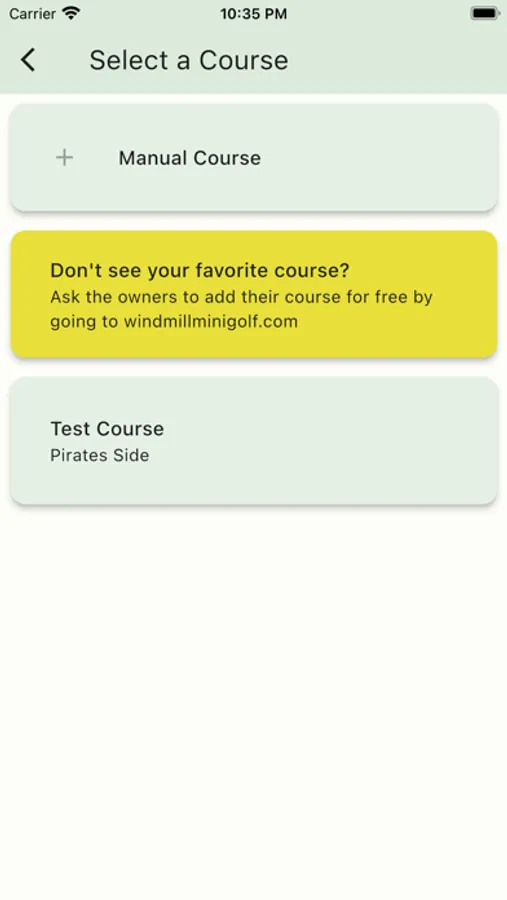 This app allows you to score a mini golf game (using only one hand!), select courses that have been uploaded previously, and save results to view later.