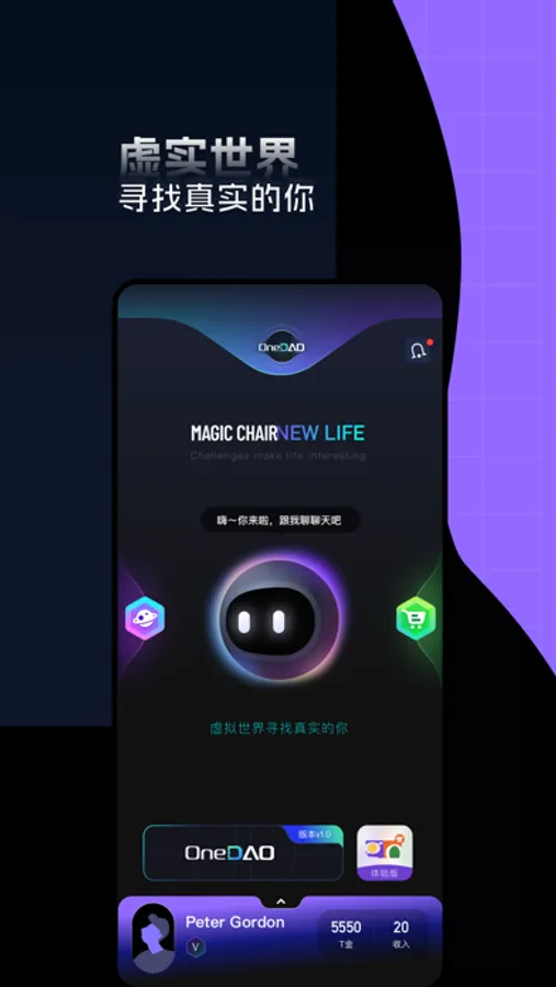 中间的图标展示AI,点击可与AI人物进行对话,咨询信息等。