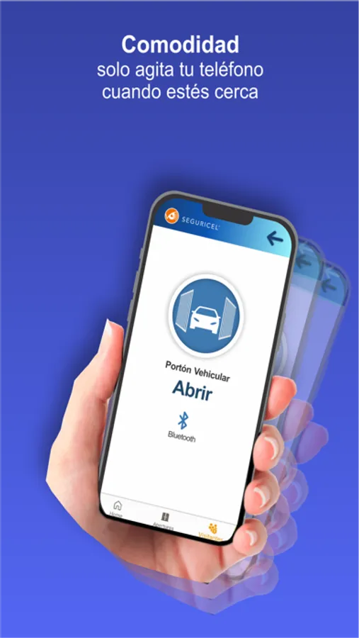 • Ahora para entrar a su residencia, simplemente sacudiendo su teléfono o activar con un toque desde su app estando próximo a sus accesos, vía bluetooth o incluso a distancia vía datos.