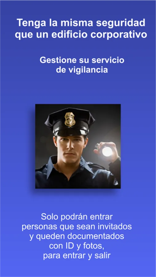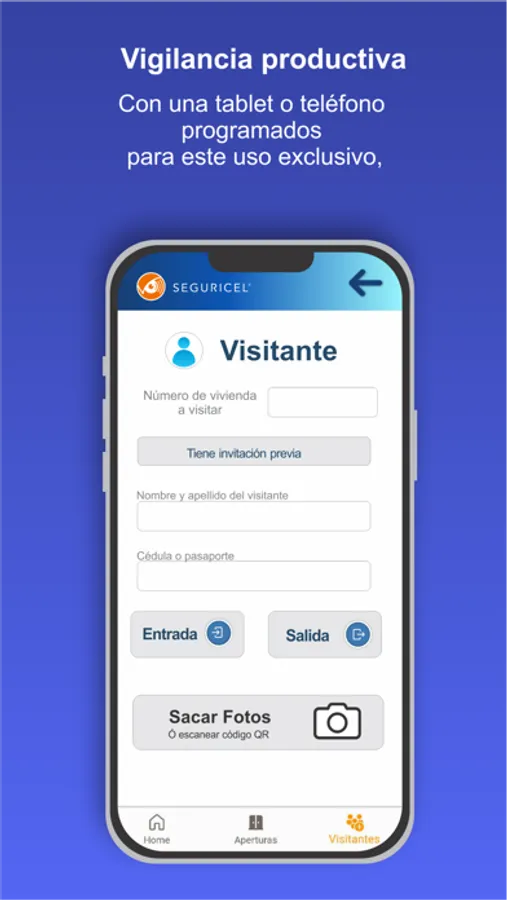 • Su residencia contará con la misma seguridad de un edificio corporativo, el vigilante, con una Tablet o teléfono programados para este uso exclusivo, podrá escanear los códigos QR de los visitantes con invitación; Y también tomara los datos, y sacará fotos incluyendo las identificaciones. También le permitirá usar el “intercomunicador” incluido en la app de vigilante, para comunicarse con usted con una llamada de datos y así contar con su autorización para permitir acceso a visitantes sin invitación.