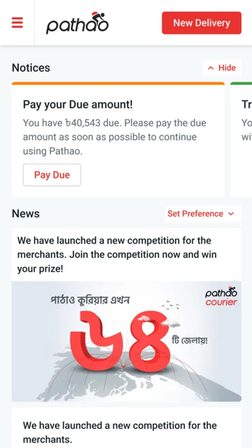 Pathao Courier is one of Bangladesh’s leading logistics service providers. Our new Merchant App enables you to seamlessly place and manage your orders as well as receive quick payment on your deliveries!