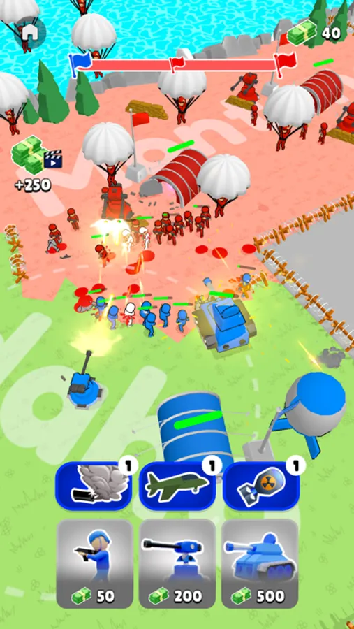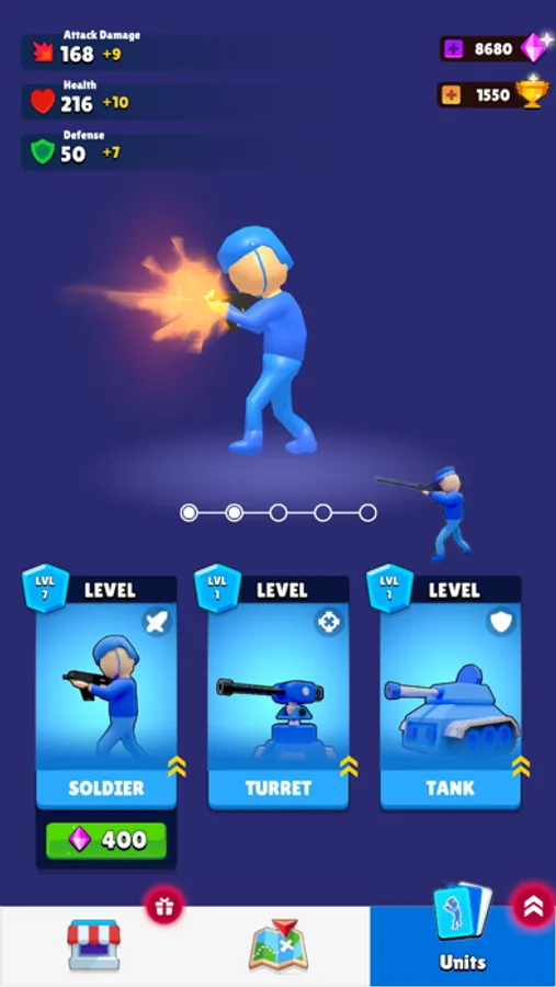 Command your troops and capture all the state! Challenge your mind and reaction. Choose between soldiers to strategize your attack and upgrade them with your looted gems to overcome your enemies.