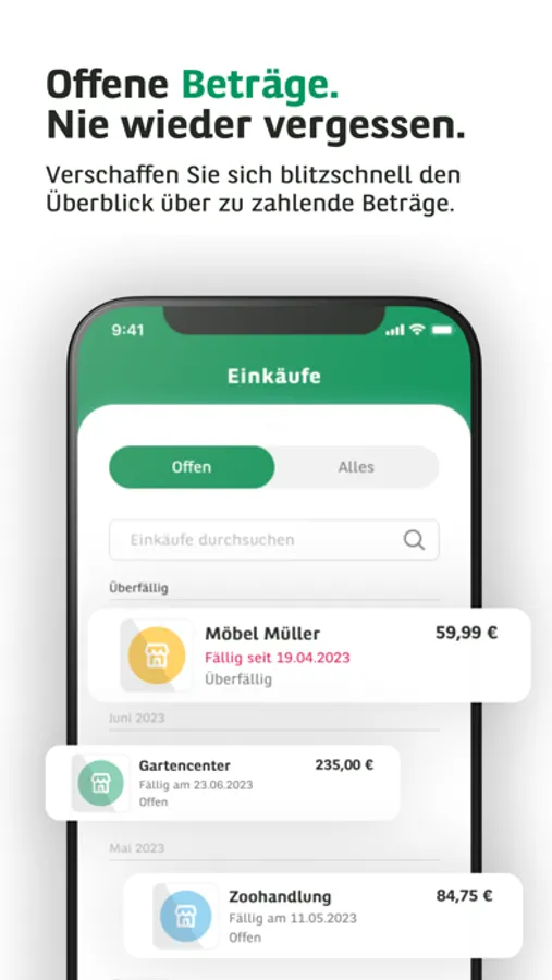 - Überblick über Ihre Einkäufe und Rechnungen (z.B. Kauf auf Rechnung oder Kauf auf Lastschrift)