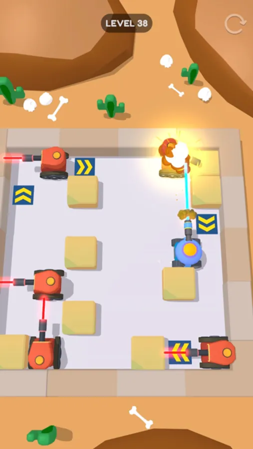 Dive into the epic battle of Tanks Gunners, where you have to strategically move through the battleground to win each level. Beware of the enemy's line of attack as you will be crushed.