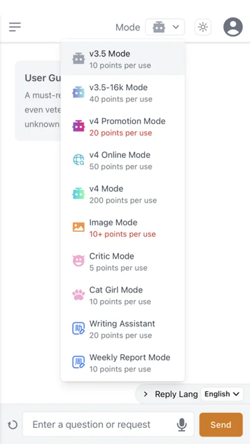 6. Multiple dialogue modes: We offer various dialogue modes for you to choose from and switch between, making the conversation more natural and smooth.
