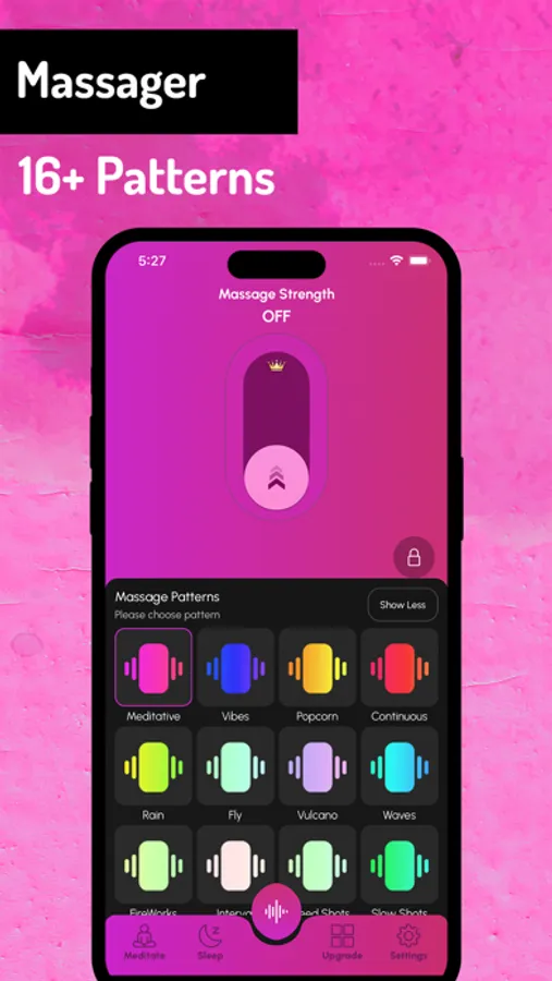 Immerse yourself in a state of total relaxation with our calming massager therapy app, featuring music for meditation, sleep, and relaxation. Massager app is designed to be simple and easy to use for everyone. Choose your preferred massage pattern, press play, and experience a calming and meditative massage while adding relaxing sounds or meditation music.