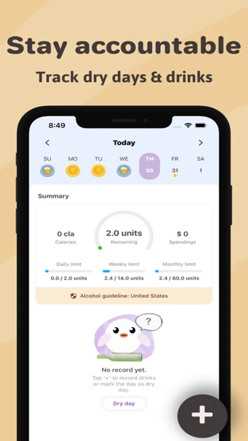 Among the many powerful features, we support Blood Alcohol Content calculation to estimate when your alcohol level returns to zero after drinking and mood tracking to see how your alcohol consumption affects your mood over time.