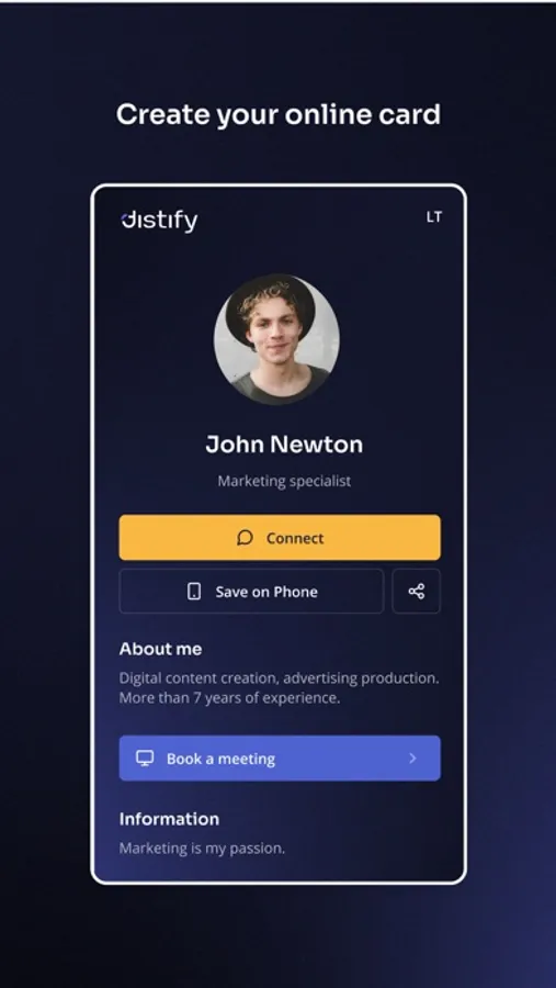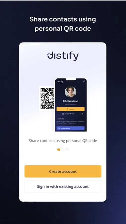 Distify is a cutting-edge app that enables users to create personalized smart business cards and share them effortlessly via QR codes. With a focus on eco-friendly networking, Distify streamlines professional connections while offering customization and secure data sharing. Transform your networking experience today!