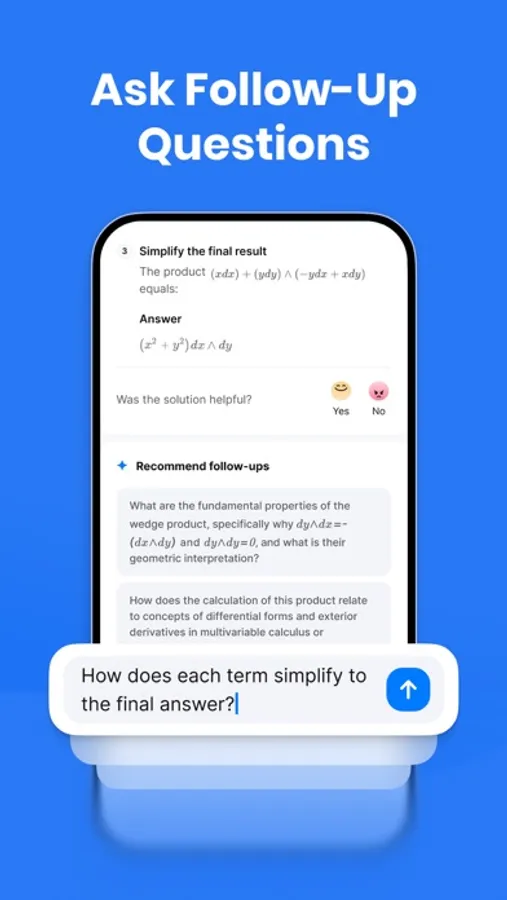 Take a photo of a problem from a textbook, worksheet, notebook, or whiteboard and receive a detailed breakdown in seconds. This turns stuck moments into clear, learnable steps.