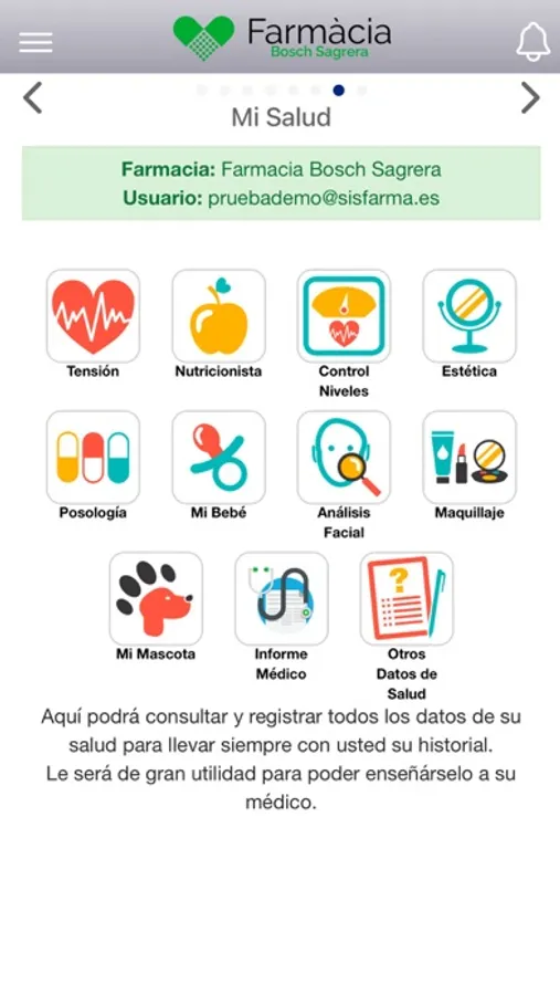 5. Mi salud: consulta desde casa o desde cualquier parte del mundo los datos de tu salud que Farmacia Bosch Sagrera te ha registrado día a día gracias al gran equipo de profesionales que disponemos.