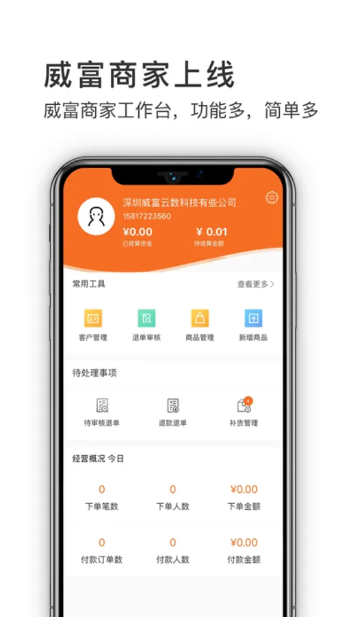 威富商家是威富e家在线商城系统商家端管理软件,操作威富商家实现简单轻便的运营方式,打开威富商家随时随地管理店铺,通过手机移动端的方式管理商家商城