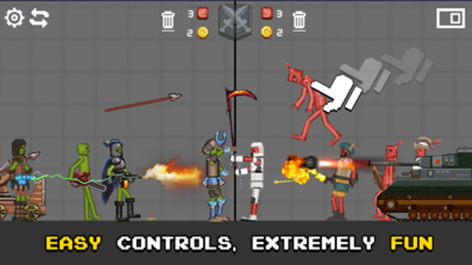 epic army with different skills and funny faces you will enjoy the fighting style and funny sounds they make and how they simulate the battle