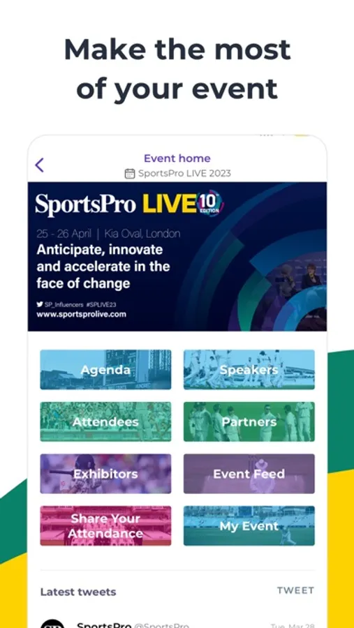 This app allows you to access your delegate pass, view the most up-to-date agenda, browse delegate lists*, book meetings and access on-demand content* for all SportsPro Events.