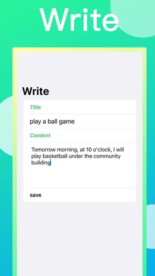 You can enter the title and content for a simple reminder, and all data will be saved locally, ensuring absolute security and privacy.