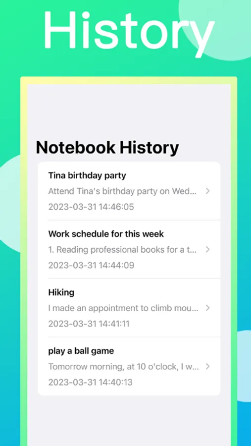 All notes saved locally will be sorted in chronological order and then displayed in the history note list.