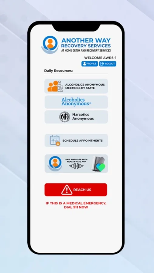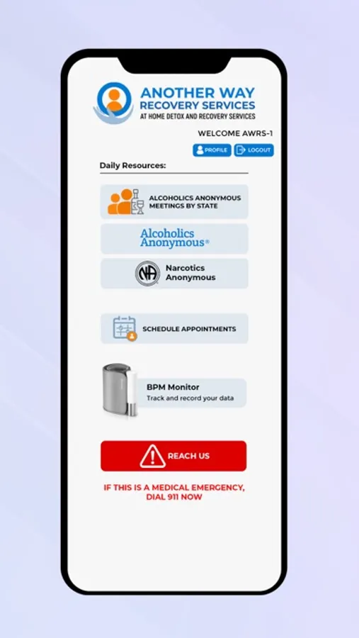 AWRS APP is a FREE APP. AWRS admin will create account for the patient and AWRS qualified team will provide at-home detox service and monitor their health status. The patient can access the premium features of the APP.