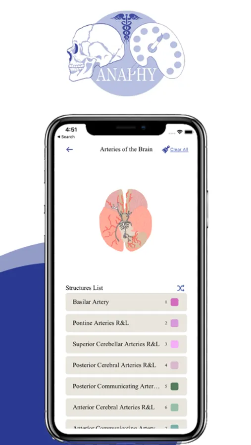 Anaphy is an anatomy color-by-numbers mobile application. It is intended to be an enjoyable way for students, or anyone interested in Anatomy, to learn about the human body. Anaphy combines the stress-reducing properties of coloring with the competency-increasing benefits of using location association and color recognition, with the added advantage of personalized feedback regarding accuracy that paper coloring books do not offer. Each anatomy-related diagram will have a terms list that will display each structure with its associated color. Once a user colors parts or all of a particular diagram, they can press the "submit" button to receive feedback about the correctness of their drawing. Once the diagram is reviewed, the user will receive a notification within the app denoting the status of their colored diagram, either correct or incorrect. App users will have coloring diagrams from each human body system to choose from. Users will also have the opportunity to fill out the "contact us" form within the app to request the creation of new anatomy-related diagrams. We will do our best to accommodate these requests and add new coloring diagrams frequently.