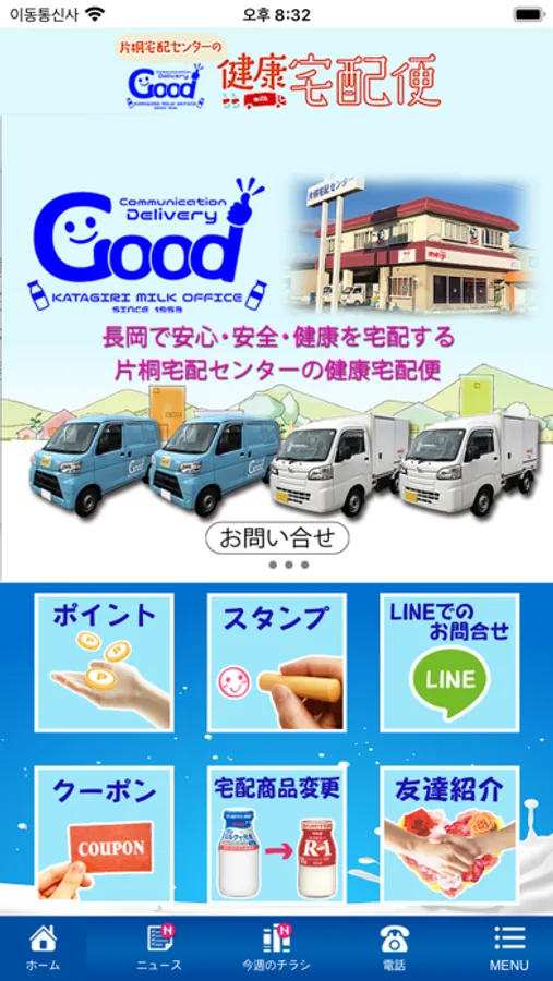 新潟県長岡市にあります、(株)明治の牛乳、ヨーグルト、その他の乳製品を中心に様々な健康食品などをご自宅まで配達を致しております片桐宅配センターです。