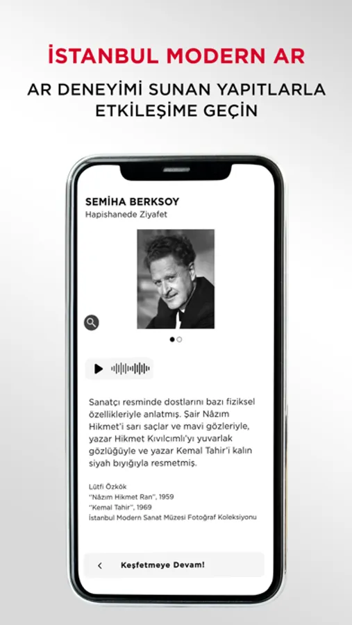 * Artırılmış gerçeklik ile seçili yapıtlar hakkında video, ses ve fotoğraf destekli detaylı bilgi edinin.