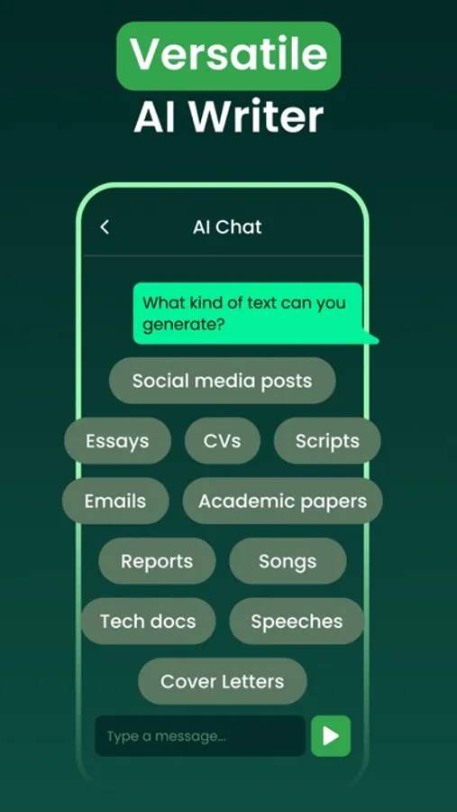 Whether you want to write long-form content (essays, emails, articles, etc.) chat about current events, share your thoughts and feelings, or just have a casual conversation, AI Chat - Personal AI Chatbot is here to listen and engage with you. With its constantly evolving AI technology, AI Chat - Personal AI Chatbot is able to understand and respond to a wide range of topics and topics of conversation.