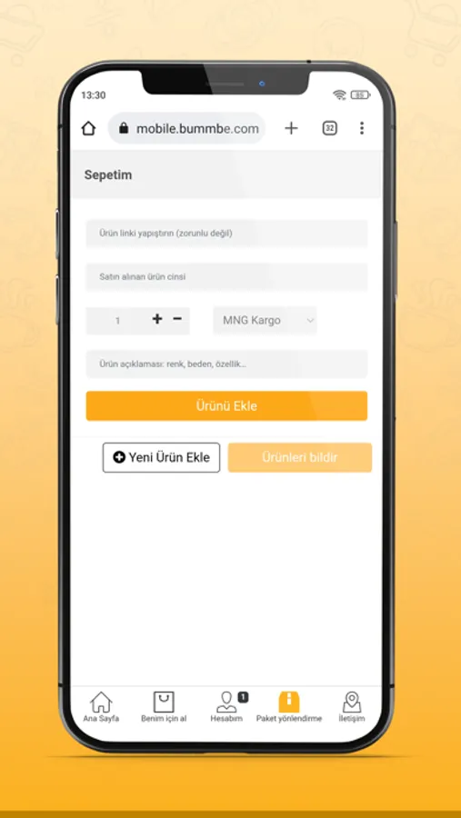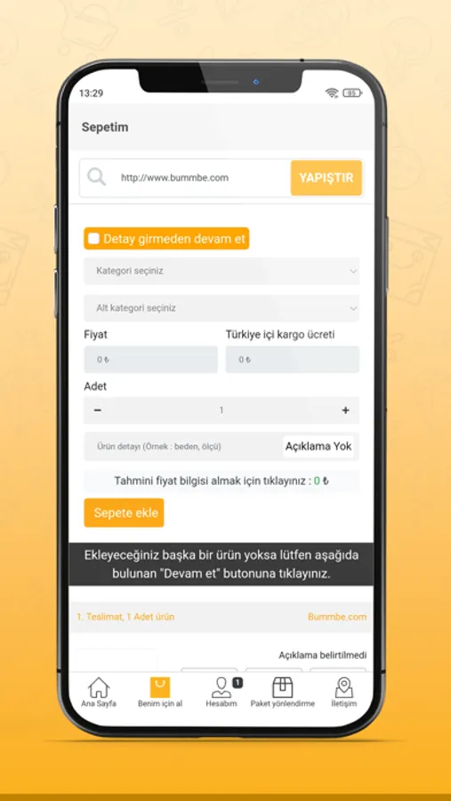 Türkiye 'den KKTC 'ye tüm masraflar dahil ve hiç bir süpriz ile karşılaşmadan ürün almak artık çok kolay. Bummbe.com ihtiyacınız olan ürünü hiç bir zahmete girmeden ve süpriz ücretler veya gümrük sorunları yaşamadan kapınıza kadar getiriyor. Siparişinizi 3 adımda tamamlayın ve zahmetsiz ürün getirmeyin rahatlığını yaşayın.