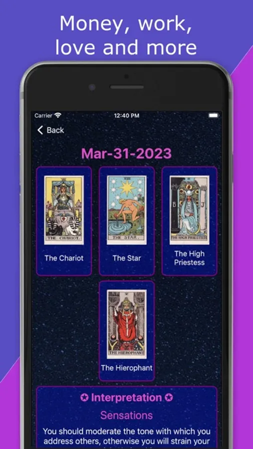 This Tarot offers 5 types of tarot spreads, and the interpretation of the resulting spreads. Anticipate your future.