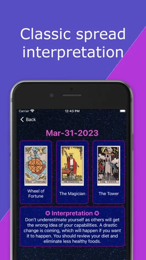 A very user-friendly interface, with realistic visual effects. All the Tarots offered by this app are totally free. The Premium version removes ads and allows unlimited daily readings.