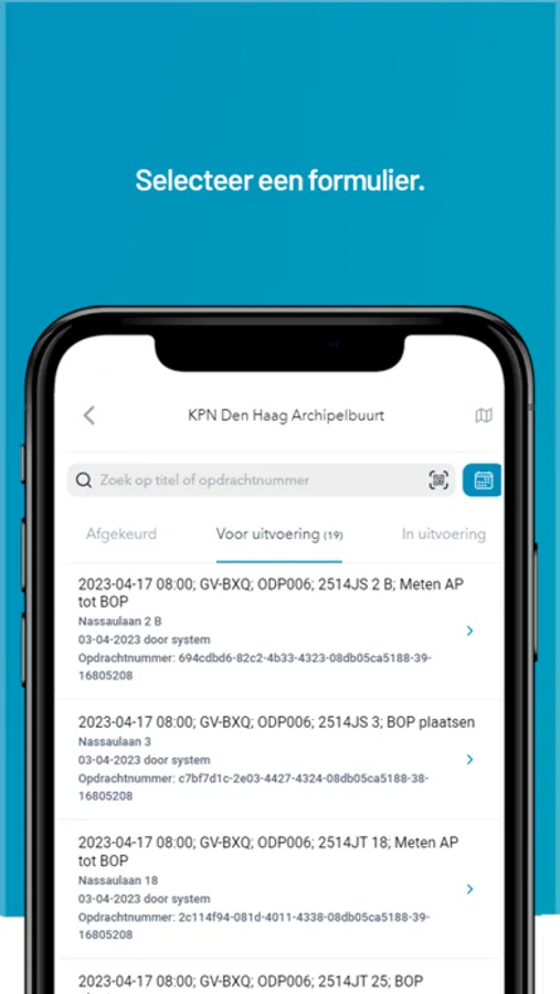 In Connected worden formulieren weergegeven die voor jou bestemd zijn. Houd bij of er nieuwe formulieren voor uitvoering zijn of voer een herkeuring uit. De taken in Connected zijn al verrijkt met informatie uit FiberWorkz, om het werk zo gemakkelijk mogelijk te maken. Geen informatie invullen die al bekend is, maar bijdragen aan betere kennis over de aansluitingen.