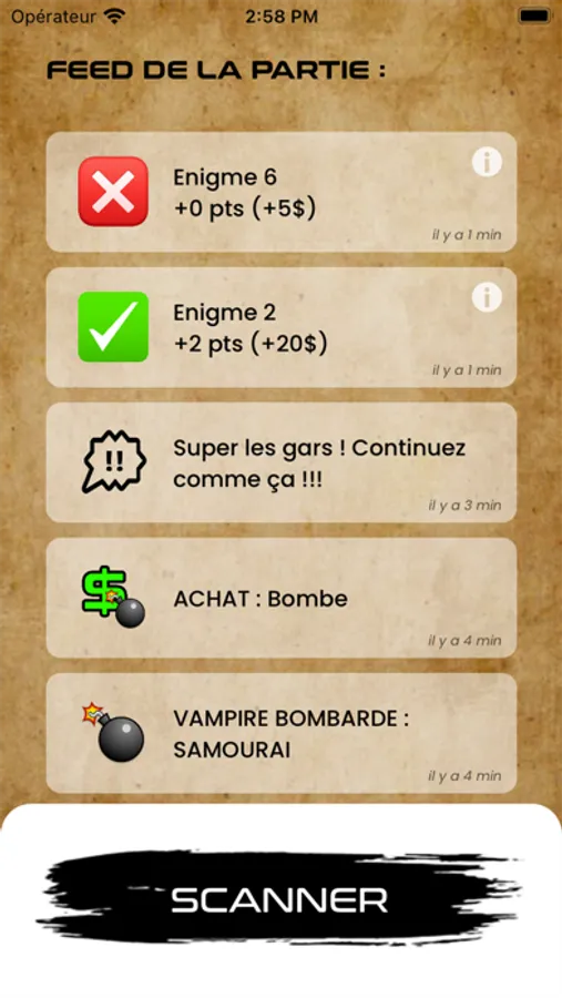 Grâce à l'application vous pourrez profiter pleinement de votre partie de QR GAME !