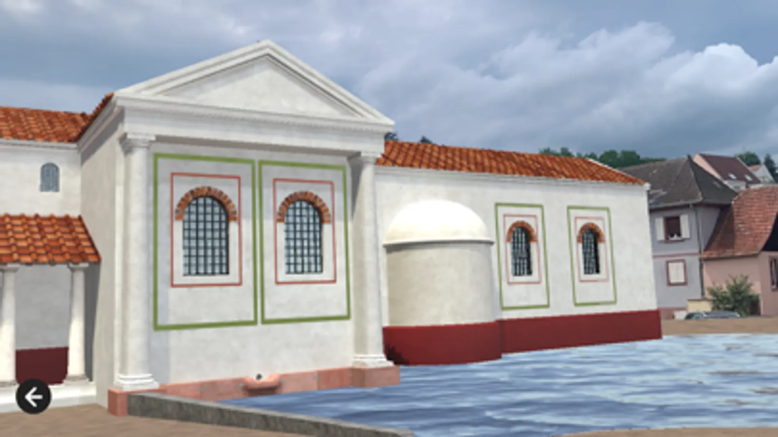 - de visualiser une reconstitution en 3D du bâtiment antique tel qu’il devait se présenter au IIIe siècle de notre ère. Cette reconstitution a été réalisée sous la direction de la Maison de l’Archéologie des Vosges du Nord, sur la base des fondations mises au jour et de l’architecture thermale typique de la région à l’époque considérée. Pour ceux dont le smartphone le permet (la grande majorité du parc actuel), il est également possible de visualiser cette reconstitution du bâtiment en réalité augmentée, c’est-à-dire de la voir apparaitre directement sur ses fondations réelles à travers la caméra de son téléphone. Une série de points de vue est proposé à l’utilisateur pour lui permettre de se représenter les thermes antiques suivant différents angles.