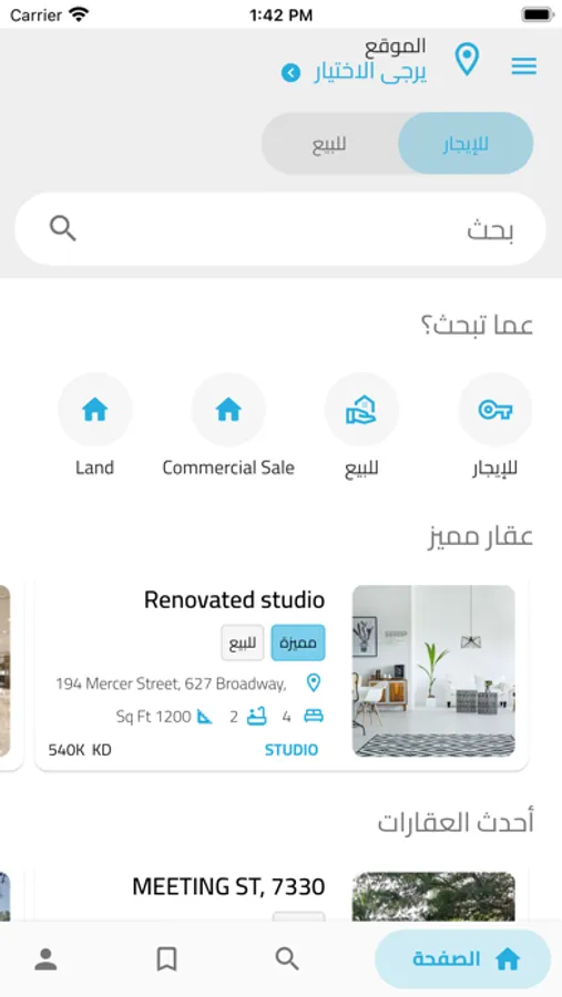 يتيح لك تطبيقنا البحث بسهولة عن العقارات بناءً على الموقع والسعر ومعايير مهمة أخرى. من خلال الأوصاف التفصيلية للعقارات والصور عالية الجودة ، يمكنك الشعور بكل عقار قبل أن تدخل إلى الداخل. بالإضافة إلى ذلك ، يتيح لك تطبيقنا حفظ قوائمك المفضلة وتلقي تنبيهات عندما تتوفر عقارات جديدة تلبي معاييرك.