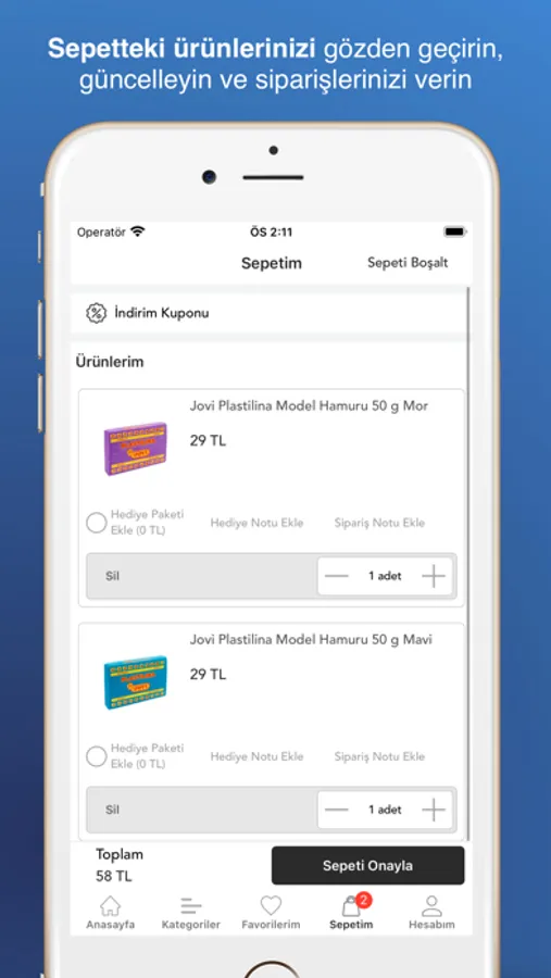 Uygulamamız sayesinde, tüm ürünlerimizi kolayca inceleyebilir, sipariş aşamalarını, kargo süreçlerini kolayca takip edebilir ve favori ürünlerinizi kaydedebilirsiniz. İhtiyaç duyduğunuz ürünlere daha hızlı ulaşıp, kampanyalarımızdan ilk siz haberdar olabilirsiniz.