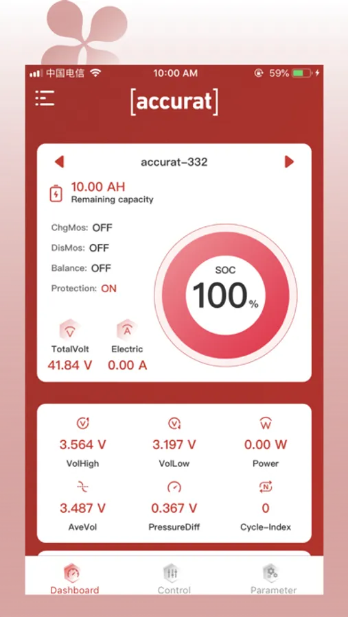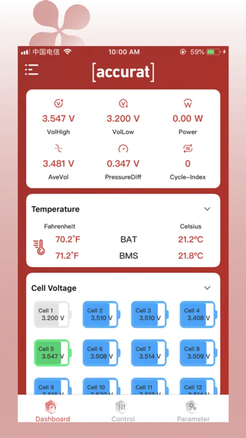2) Displays detailed battery operating information on the "Dashboard" tab including : State of Charge Percentage, Voltage, Electric, Power, Average voltage, Temperature, Cell Voltage and so on.