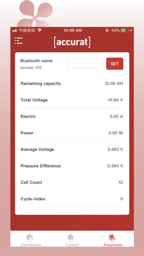 4) The "Parameter" tab include current Bluetooth name, Remaining capacity and some other parameters.