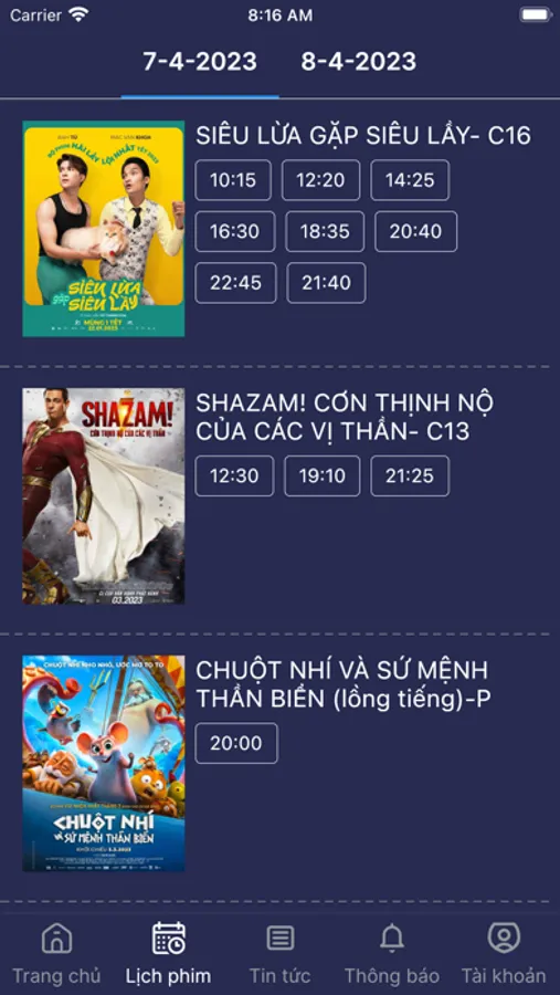 - Xem thông tin, giới thiệu phim đang chiếu và sắp khởi chiếu